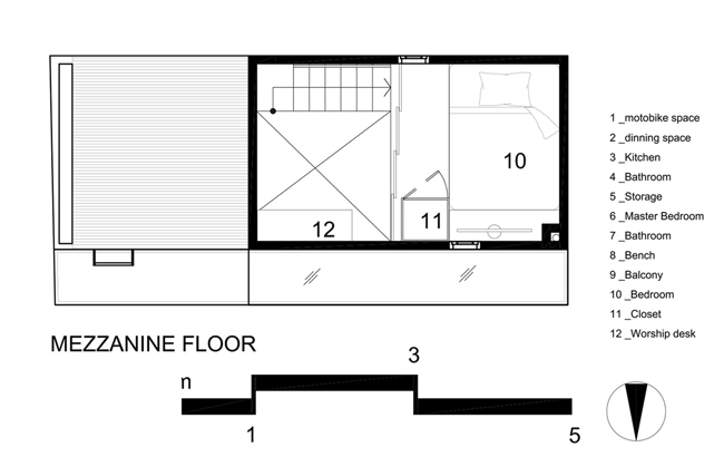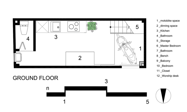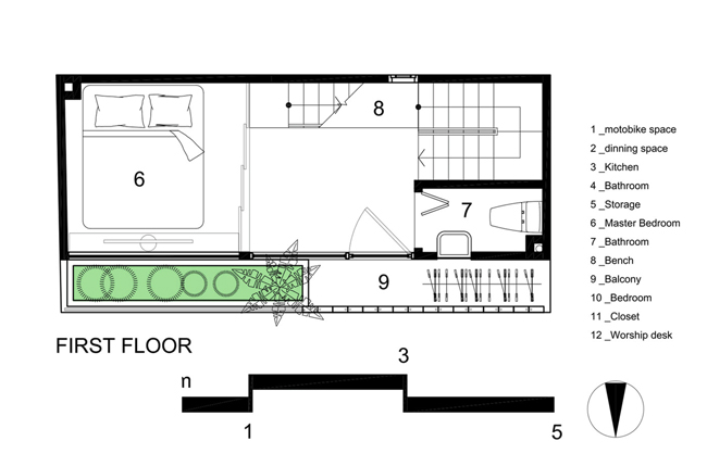 Với diện tích quá nhỏ này, kiến trúc sư đã bố trí các không gian chức năng hết sức đơn giản nhưng đầy đủ, tiện nghi cho một gia đình trẻ gồm 3 thành viên.
