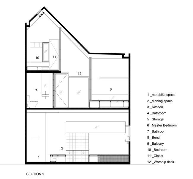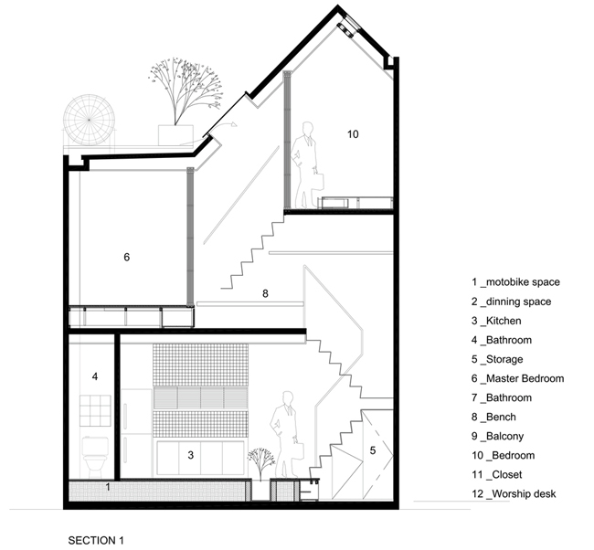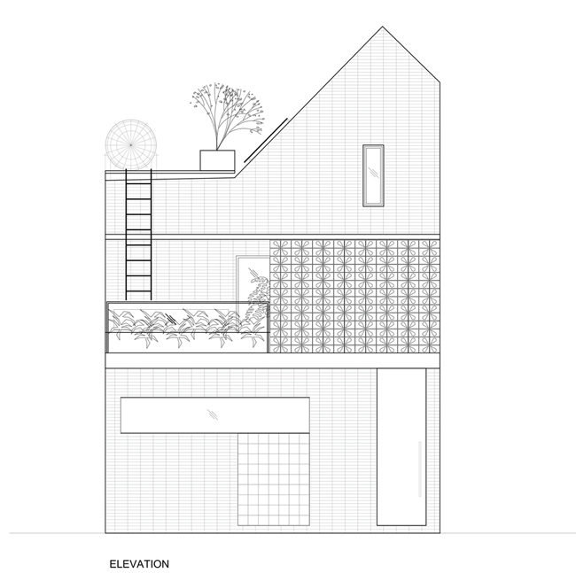 Căn nhà được xây dọc theo con ngõ, khác hẳn với các kiểu nhà ống thường thấy.