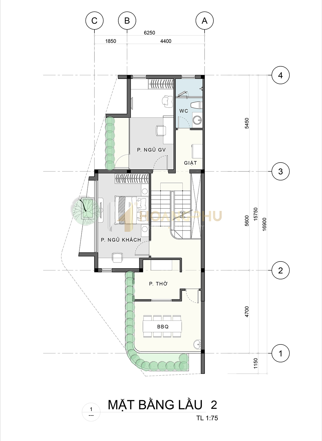 Tầng 2: Một phòng ngủ và khu giặt phơi tiện lợi.