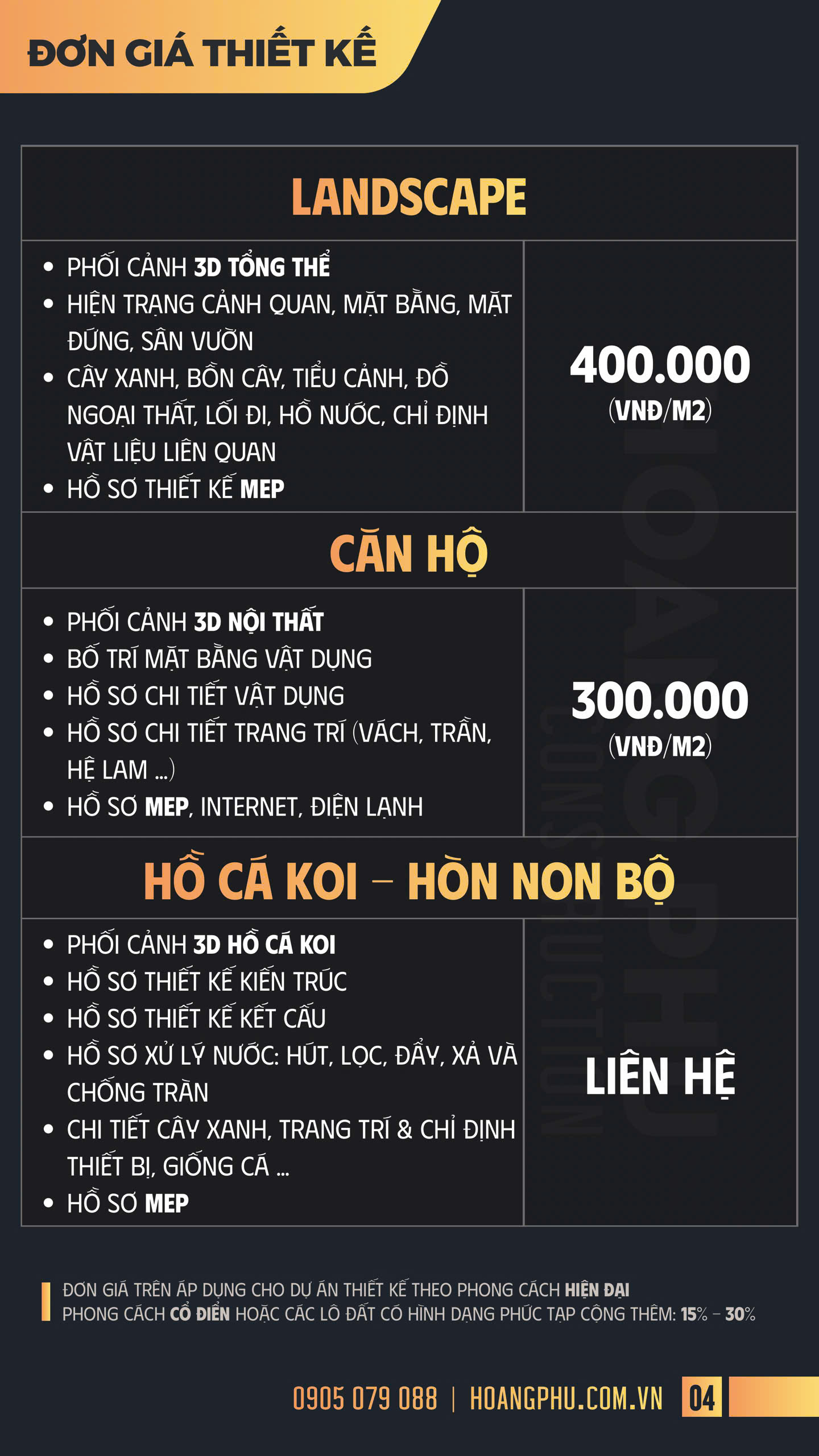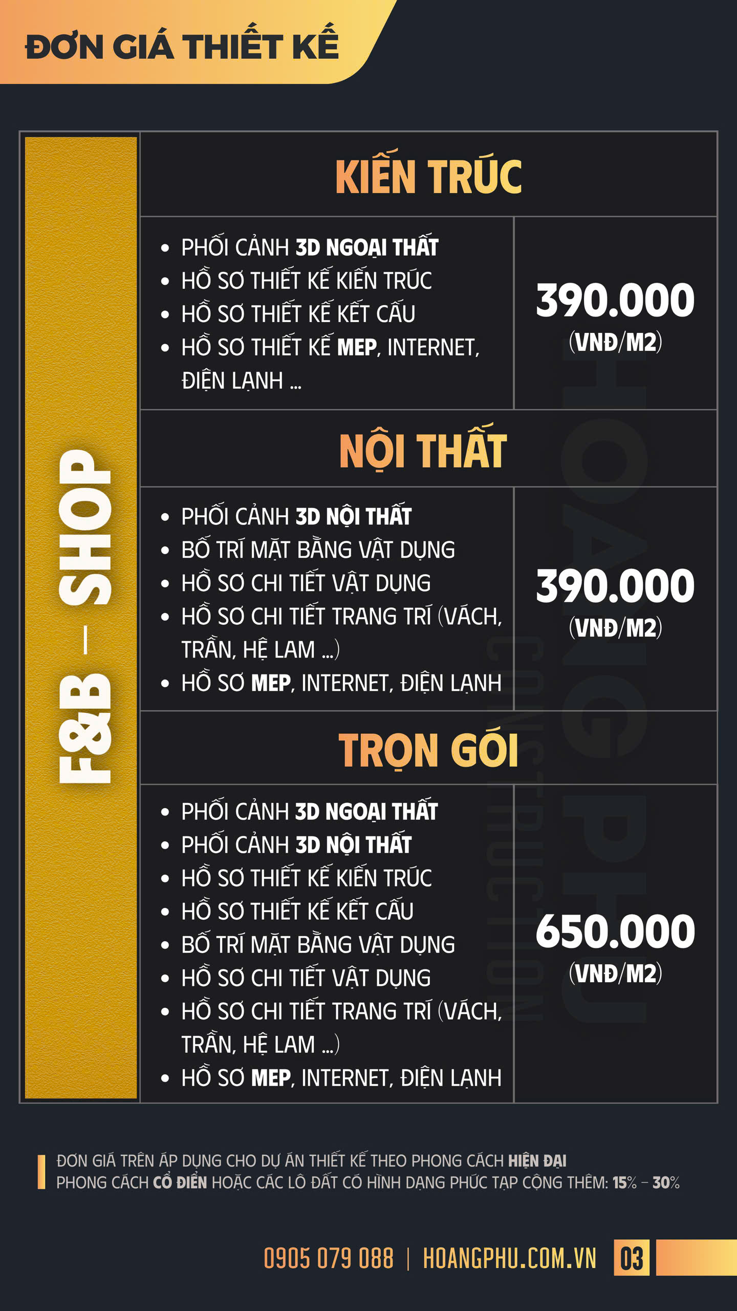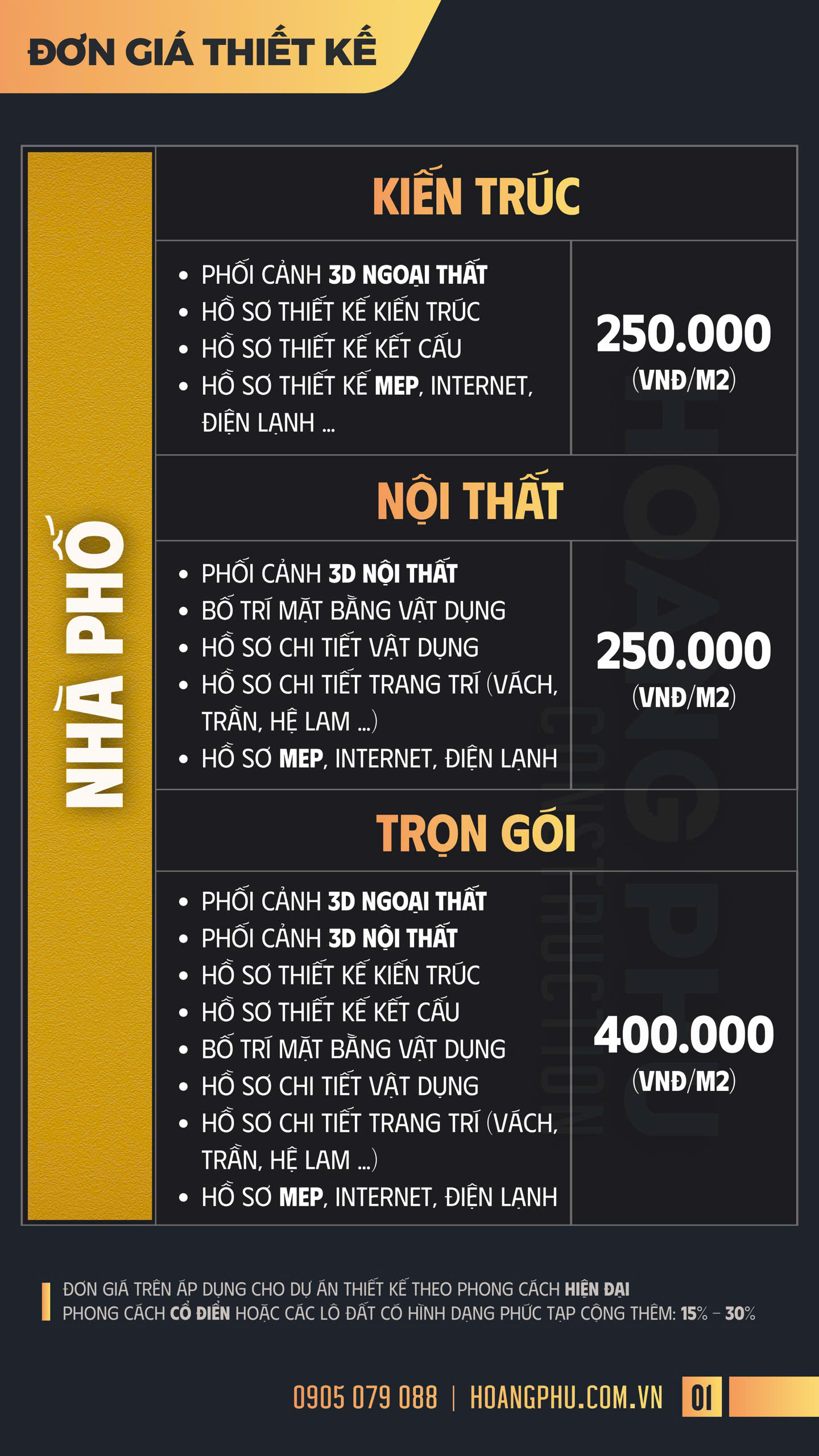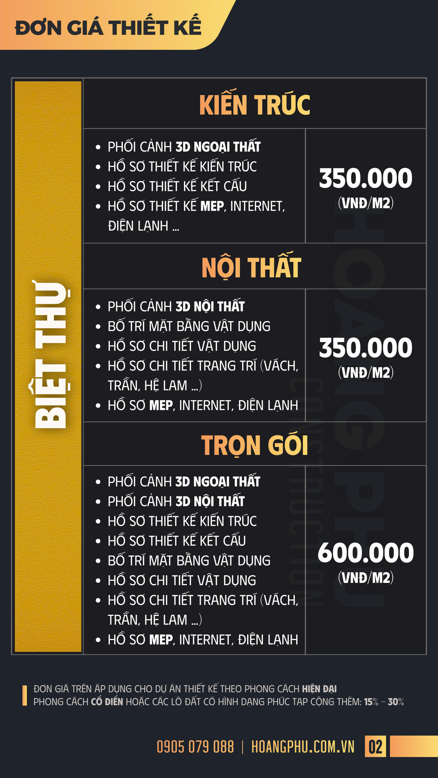 Đơn Giá Thiết Kế - XÂY DỰNG HOÀNG PHÚ - Thiết Kế & Thi Công Nhà Đẹp, Nội Thất